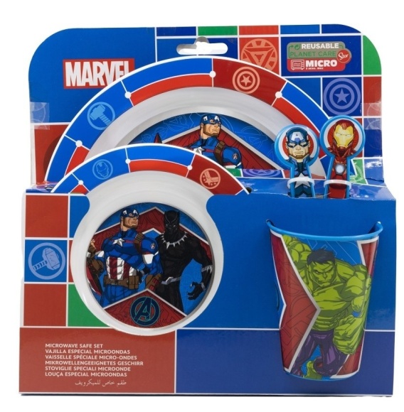 AVENGERS zestaw śniadaniowy miska talerz sztućce kubek 260