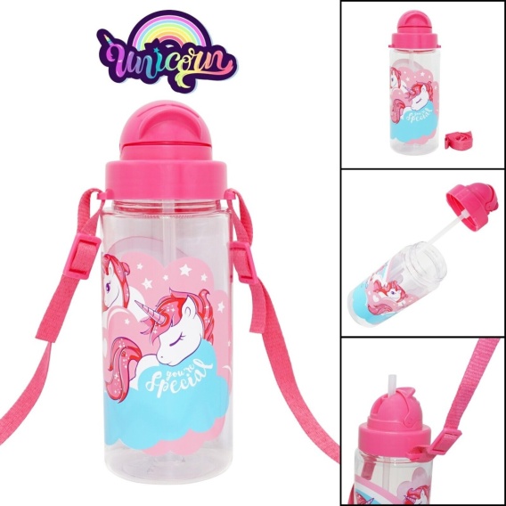 Bidon butelka na wodę ze słomką i paskiem Tritan Jednorożce Unicorn