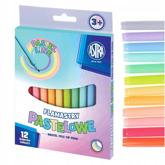 Flamastry mazaki pisaki pastelowe 12 kolorów ASTRA