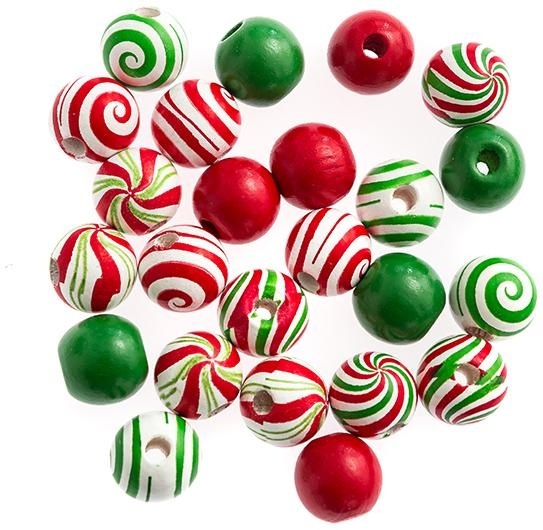 Koraliki drewniane do robienia biżuterii bransoletek świątecznych dekoracji 1,6 cm 6 wzorów x4szt,24szt