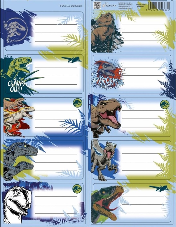 Naklejki nalepki na zeszyty 10 szt DINOZAURY