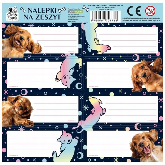 Naklejki nalepki na zeszyty 16 szt pies piesek Cleo & Frank