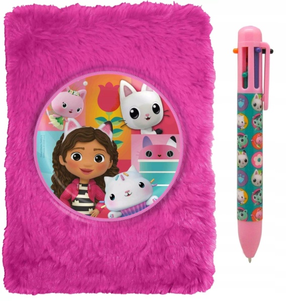 Notatnik pamiętnik puchaty + długopis 6-kolorowy KOCI DOMEK GABI