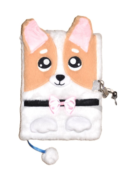 Notatnik pamiętnik sekretny pluszowy kudłacz z kłódką pies piesek Corgi A5