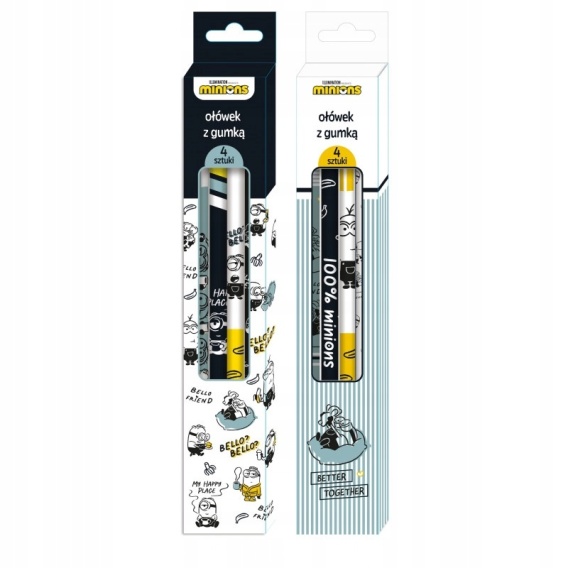 OŁÓWKI DREWNIANE Z GUMKĄ MINIONKI, 4 SZT. NA BLIST