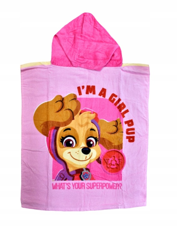 Dziewczęce ponczo wakacyjne Psi Patrol skutecznie ochroni mokrą skórę Twojego dziecka przed wiatrem i słońcem.