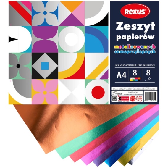 Papier kolorowy samoprzylepny metalizowanych 8 kolorów A4 REXUS