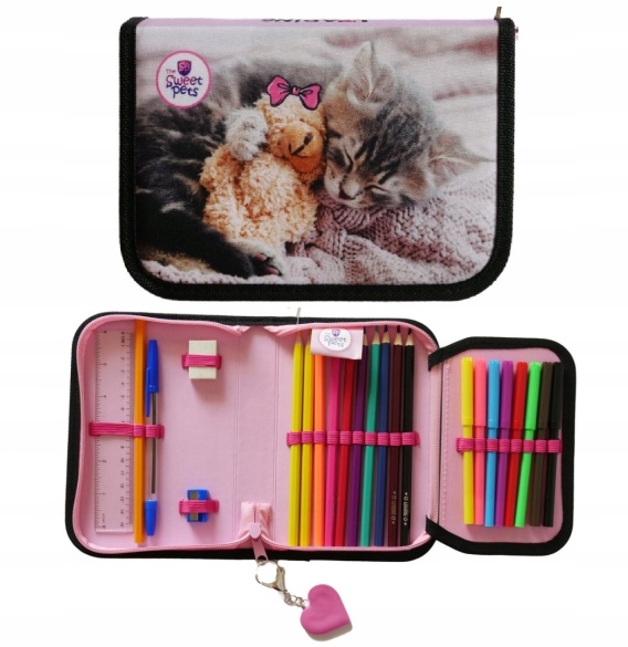 Piórnik rozkładany z wyposażeniem plan lekcji kot kotek Sweet pets