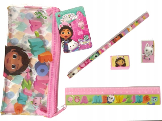 Piórnik saszetka ołówek gumka linijka KOCI DOMEK