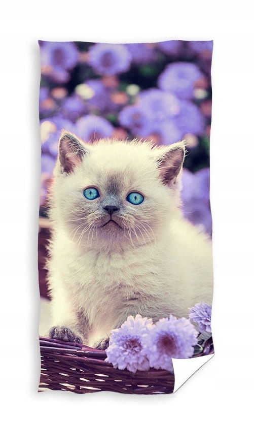 Ręcznik kąpielowy plażowy kot kociak kwiaty astry 70x140