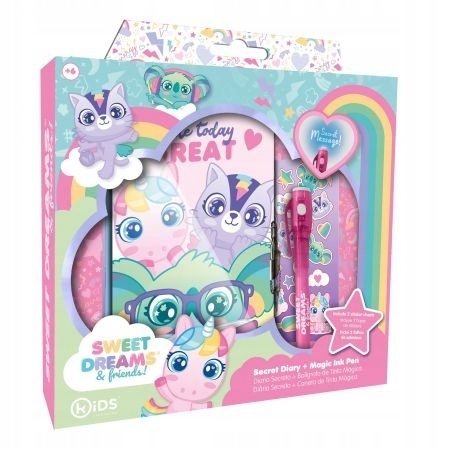 SWEET DREAMS tęczowy kot koala jednorożec sekretny pamiętnik długopis UV
