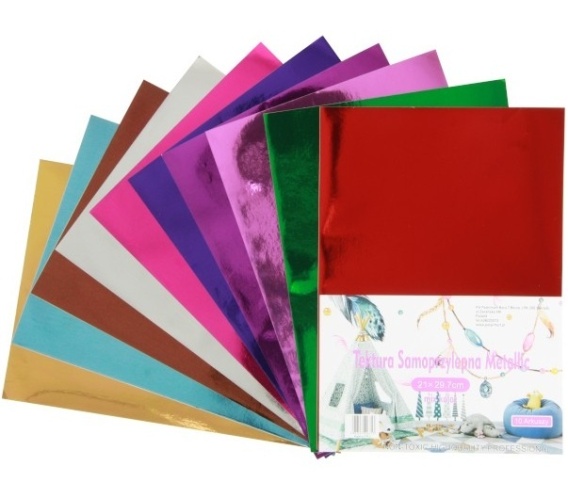 Tektura samoprzylepna metalizowana błyszcząca gładka mix kolorów A4 10 arkuszy