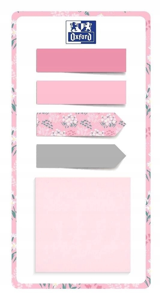 Zestawy karteczek w pastelowych kolorach i wzorach z kolekcji Oxford Kids. Każdy zestaw to pięć rodzajów samoprzylepnych karteczek - cztery indeksujące i jedne większe do notatek. Doskonale sprawdzą się do oznaczania ważnych fragmentów w książkach czy ostatnio zapisanych stron w zeszytach. Z pewnością przypadną do gustu wielbicielom ozdabiania notatek, którzy będą mogli ich użyć np. do podkreślania nagłówków w swoich zapisakch. Zakładki indeksujące umożliwiają czytelne i estetyczne zaznaczanie fragmentów książek i notatek. Bloczki umożliwiają sporządzanie i przyklejanie notatek w istotnych miejscach. Klej doskonale trzyma się papieru i nie zostawia śladów po odklejeniu karteczki. Podkładki, na których umieszczone są karteczki, umożliwiają ich łatwe przenoszenie i odklejanie. Gładki papier doskonale sprawdza się do pisania długopisem lub ołówkiem.