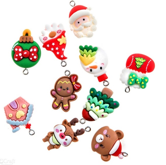 Zawieszki do bransoletek, biżuterii polimerowe 3D świąteczne renifer pierniczek 10 szt