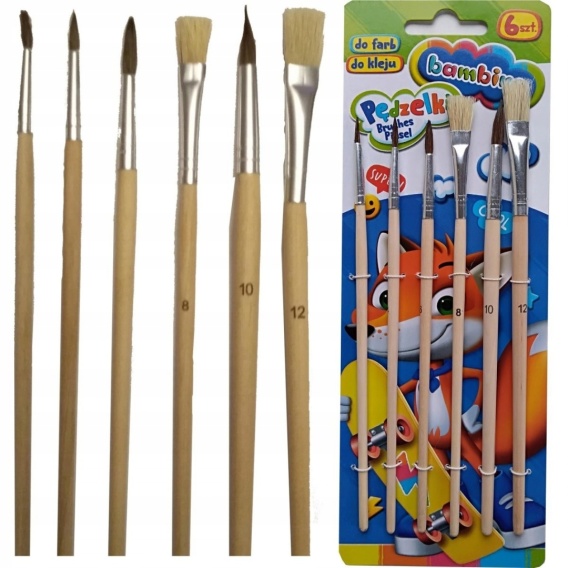 Zestaw 6 sztpędzli pędzelek BAMBINO naturalne włosie