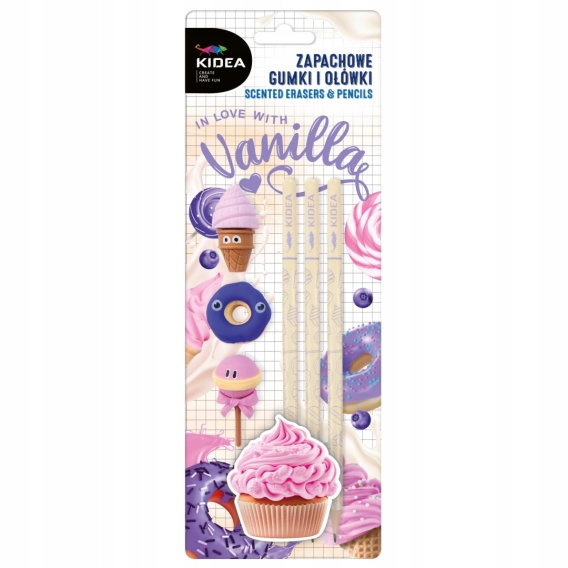 Zestaw zapachowy ołówek trójkątny 3 szt gumki do mazania zapach wanilia