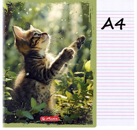 Zeszyt A4 trzylinia kolorowa do nauki pisania 32 kartek kot kotek Herlitz