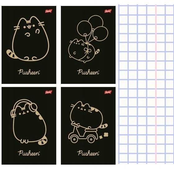 Zeszyt w kratkę A5 Pusheen kotek czarny mix wzorów 60 kartek zestaw 4szt